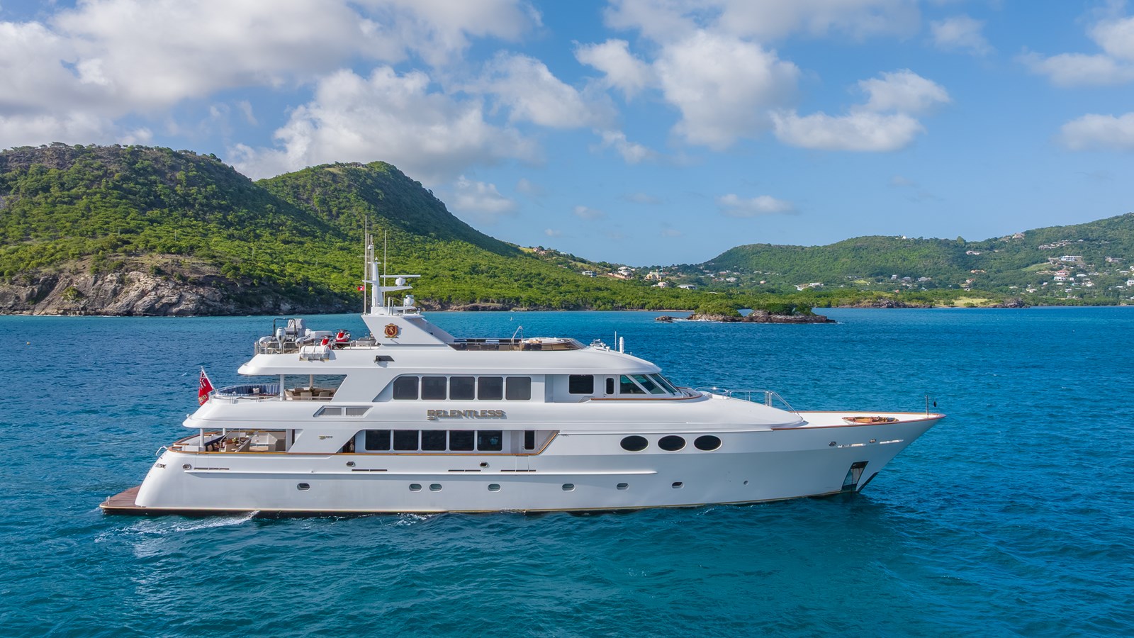 Built to full ABS, A1 Yachting Service, AMS classification and MCA certification, RELENTLESS represents one of the finest custom Trinity Tri-Deck Motor Yachts ever built! Her custom traditional interior features mahogany joinery throughout and originally designed by Dee Robinson.